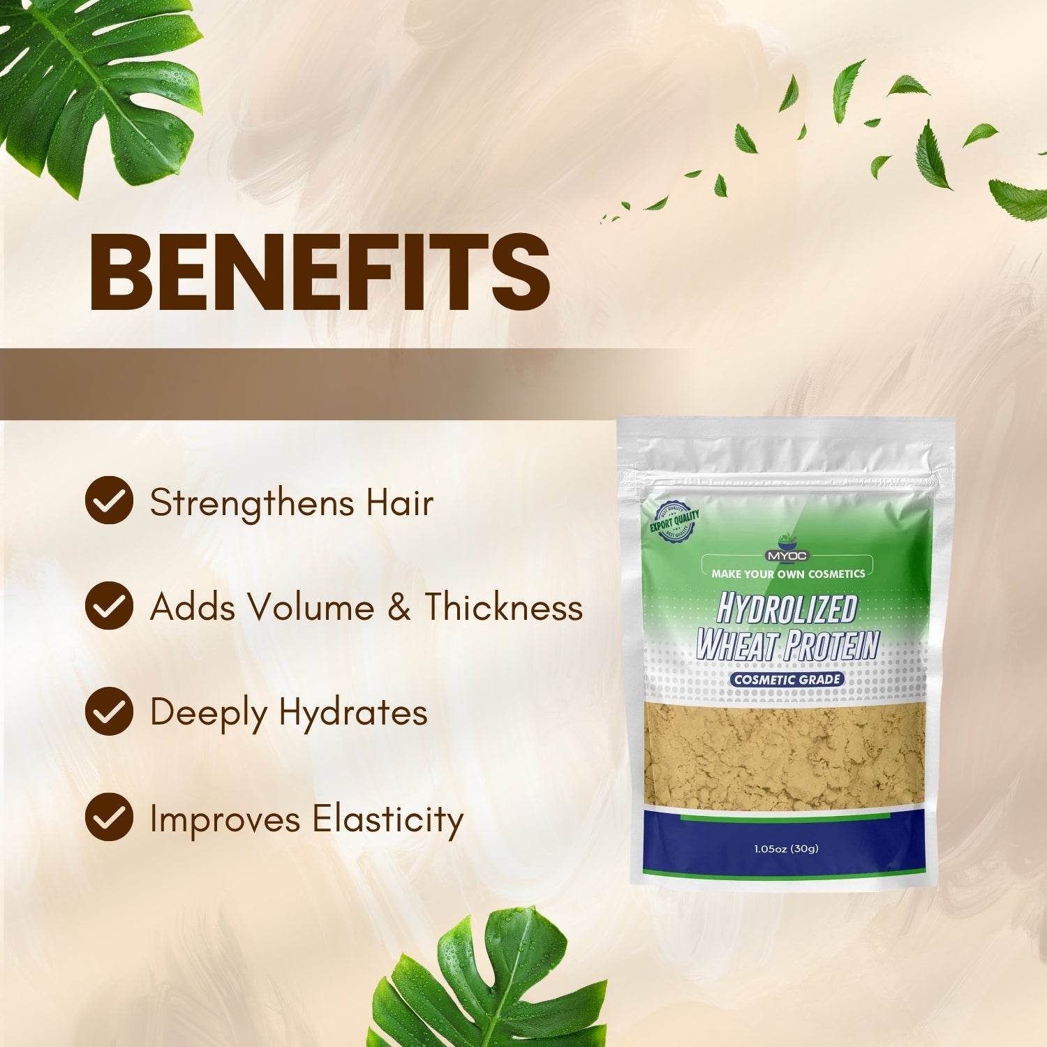 Hydrolyzed Wheat Protein is a plant-derived, cosmetic-grade ingredient created by breaking down wheat protein into smaller peptides for enhanced absorption. This powerful protein boosts hair and skin care formulations by improving moisture retention, strength, and elasticity. Commonly used in shampoos, conditioners, hair masks, and skin care products, Hydrolyzed Wheat Protein enhances hair shine, reduces hair breakage, and supports smoother, healthier-looking skin.