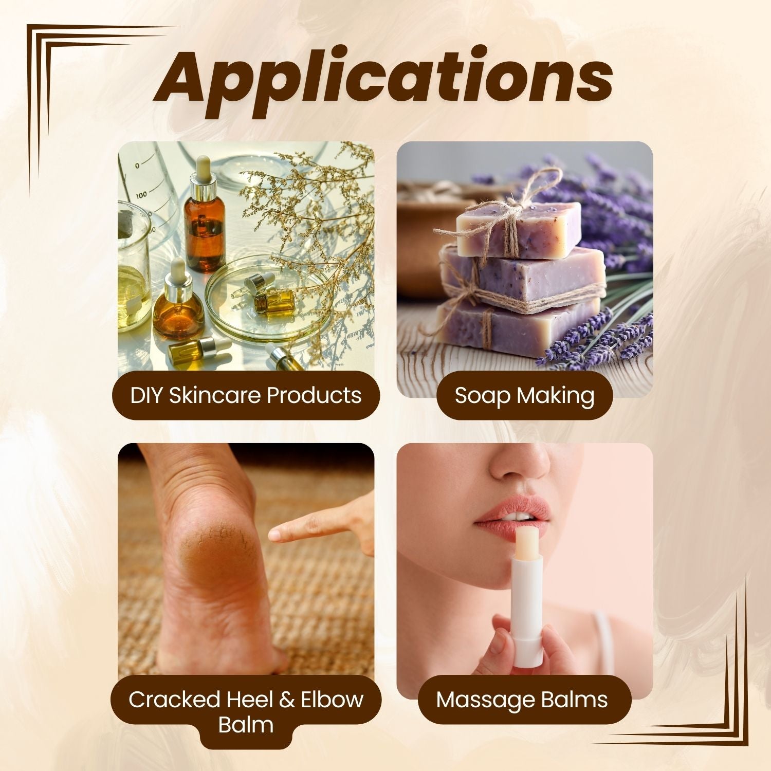 - In Formulations: Use 3–20% in creams, balms, or hair masks