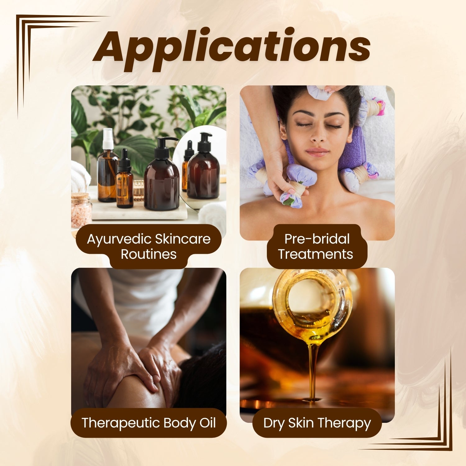 Elevate your skincare ritual with our Sandalwood Turmeric Massage Oil, expertly crafted for cosmetic use. Infused with the soothing essence of sandalwood and the skin-brightening properties of turmeric, this luxurious massage oil nourishes, hydrates, and revitalizes your skin. Its lightweight texture absorbs easily without leaving a greasy residue, making it perfect for indulgent massages or daily moisturizing. Formulated for cosmetic-grade applications, this oil enhances skin softness and radiance while delivering a calming aromatic experience.